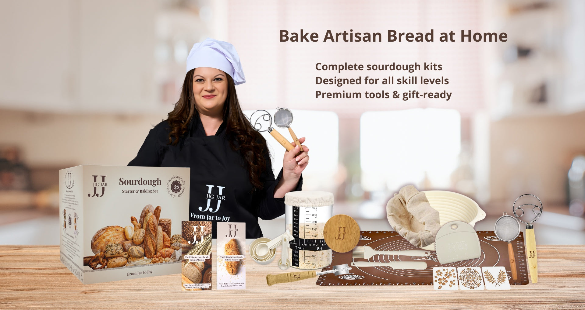Everything you need to bake beautiful artisan bread at home — sourdough starter kits, professional tools, and elegant gift-ready sets.