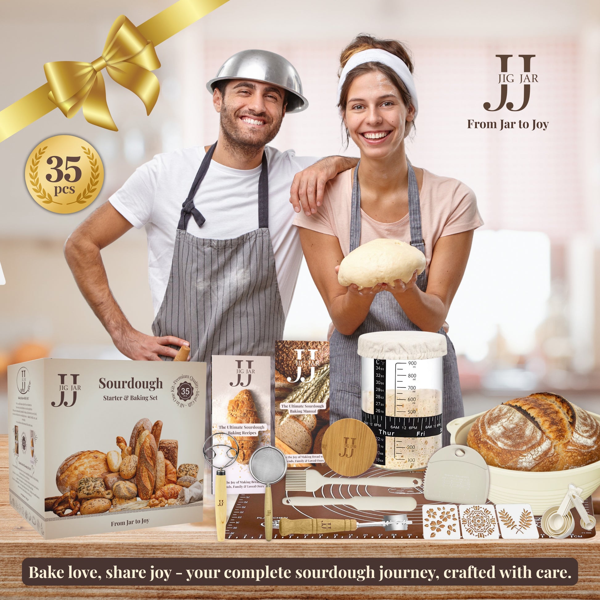 - 35 premium tools incl. starter jar, whisk, spatula & proofing basket